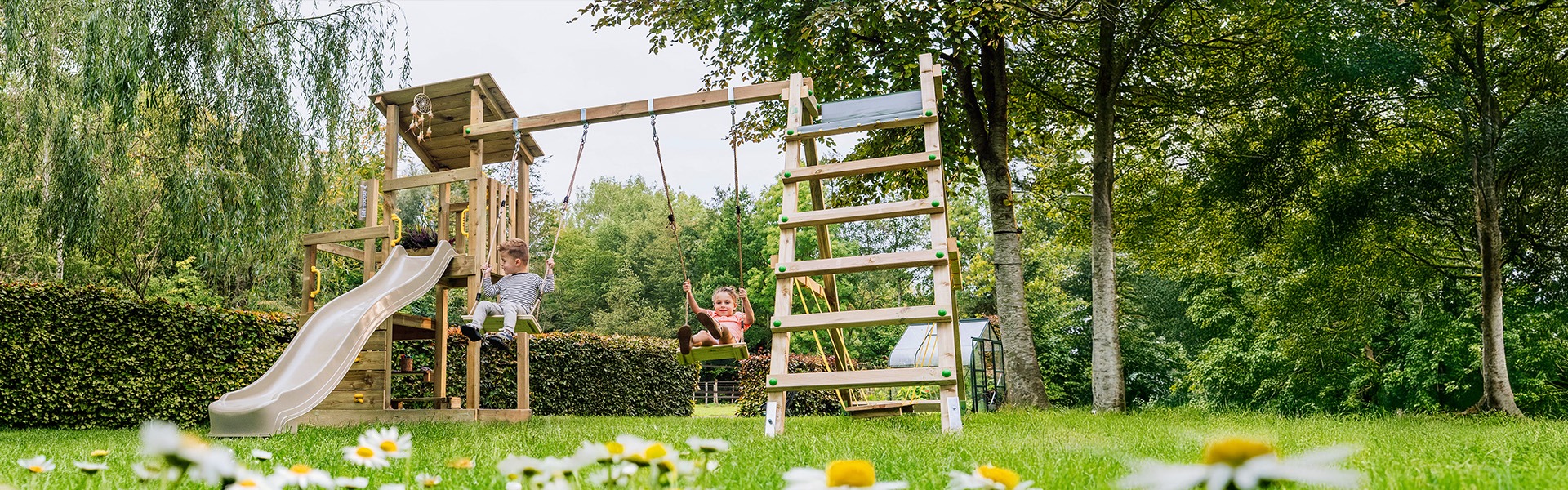 Met de outdoor-speeltoestellen van fatmoose wordt het voor gezinnen duidelijk dat buitenspelen gewoon leuker is. Wij van fatmoose geloven dat spelen in de natuur het hele jaar door mogelijk is. Het brengt niet alleen waardevolle familiemomenten met zich mee, maar geeft kinderen ook de kans om te spelen, te leren en te groeien op de beste plek die er is: in de natuur. Onze speeltoestellen, klimtoestellen, schommels, glijbanen en andere tuinspeeltoestellen zijn zo ontworpen dat ze niet alleen een veilige speelomgeving bieden, maar ook een stimulerende plek creëren voor kleine ontdekkers in de tuin.